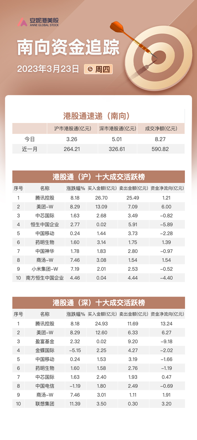 交易所數據顯示,3月23日南向資金: