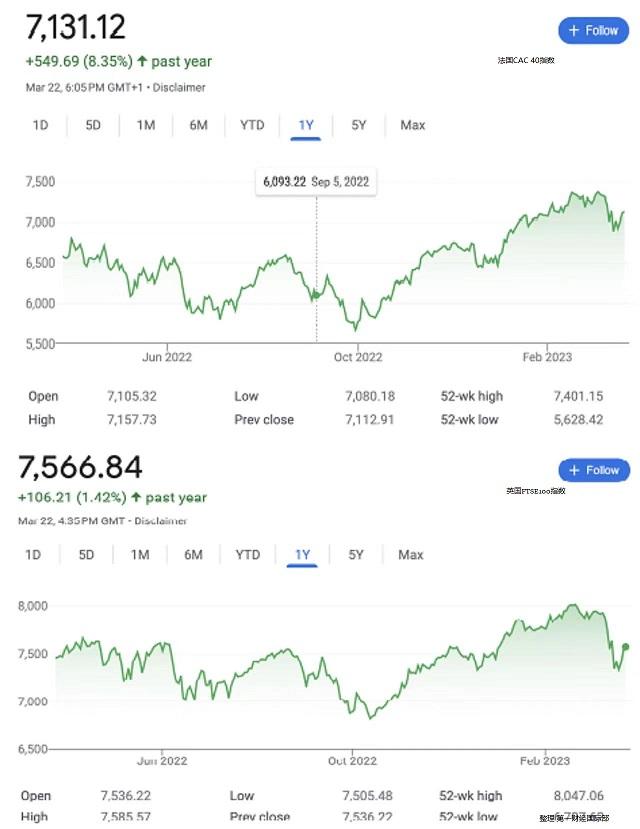 22日,歐洲三大股指當天全線上漲。其中,英國富時100指數報收於7566.84點,比前一交易日上漲30.62點,漲幅為0.41%;法國CAC40指數報收於7131.12點,較前一交易日上漲18.21點,漲幅為0.26%;德國法蘭克福股市DAX指數報收於15216.19點,較前一交易日上漲20.85點,漲幅為0.14%。