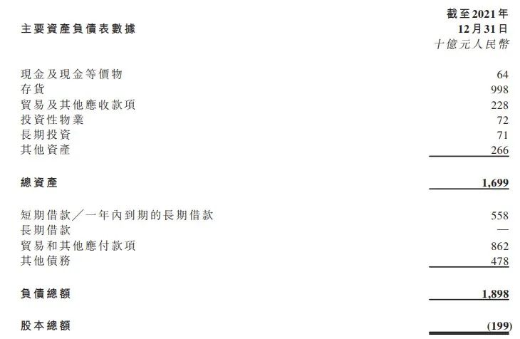 如上圖,恆大汽車截至2021年末有總資產不到596億元,但總負債高達588億元——可以説,也是一個爛攤子。