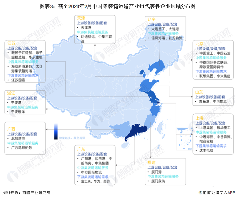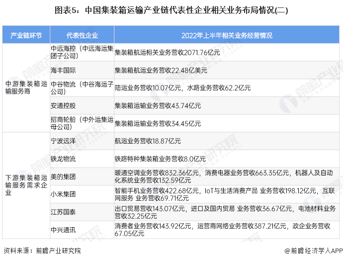 本文核心數據:集裝箱運輸產業鏈企業分佈;集裝箱運輸產業鏈代表企業經營數據