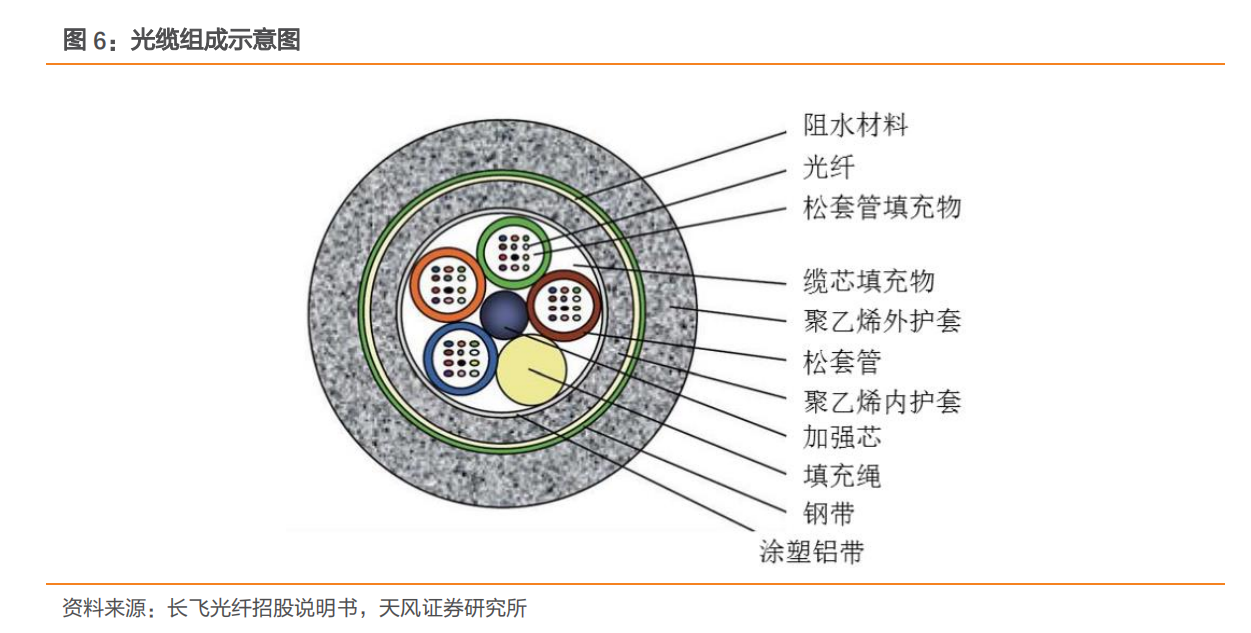 光纜是由一定數量的光纖按照一定方式組成的通信線纜。光纖是光纜核心,光纜的傳輸,能力由光纖決定。光纜作為光纖光纜行業的最終產成品,一般直接銷售給終端客户,例如中國移動、中國聯通和中國電信等三大國有電信運營商,用於通信線路的建設。