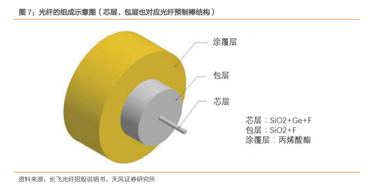 公開資料顯示,光纖是一種傳輸光束的介質,由芯層、包層和塗覆層構成。光纖具有通信容量大、中繼距離長、保密性好、適應能力強等顯著特徵優勢,因而其被廣泛應用於通信傳輸。