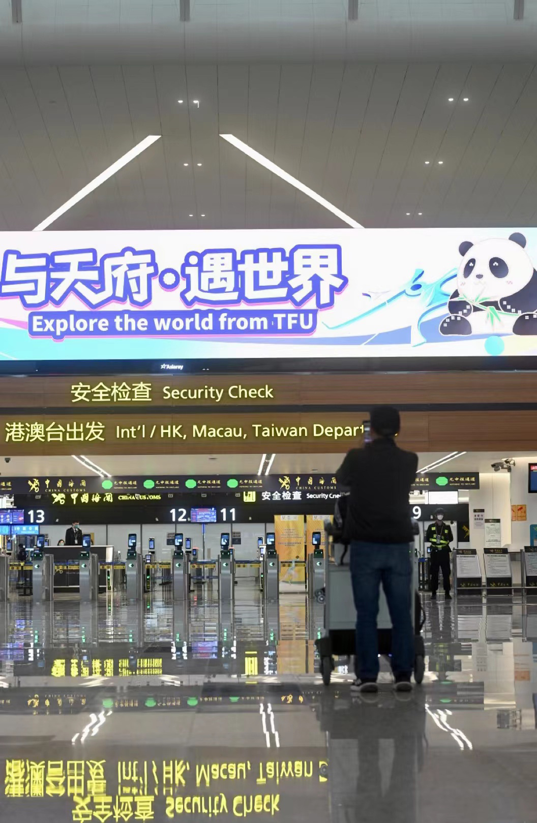 成都天府國際機場:在智慧體驗方面,成都天府國際機場設計有出境預安檢、海關安檢聯合檢查、入境手提行李預檢等環節。持有外國護照的旅客可通過指紋採集設備自助採集指紋。在文化體驗方面,成都天府國際機場在1號航站樓內建設了4座參與性庭院和2座觀賞性庭院,並在旅客抵離的主流線上打造了大量藝術裝置,為旅客營造濃厚的出行「氛圍感」。