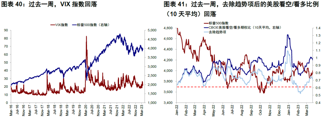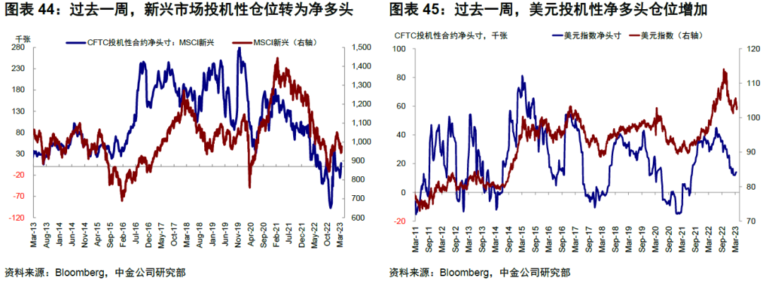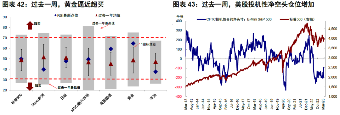 ► 情緒倉位:黃金逼近超買,美股投機性淨空頭增加。過去一周,去除趨勢項后的美股看空/看多比例(10天平均)有所回落,黃金逼近超買。倉位方面,美股投機性淨空頭倉位增加,新興市場股票投機性倉位轉為淨多頭,美元和歐元投機性淨多頭均增加。