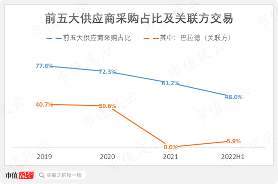 2019-2020年,巴拉德為公司的第一大供應商,分別佔公司當年採購金額的41%和40%。類似地,2021年起,公司對巴拉德的採購也大幅減少。
