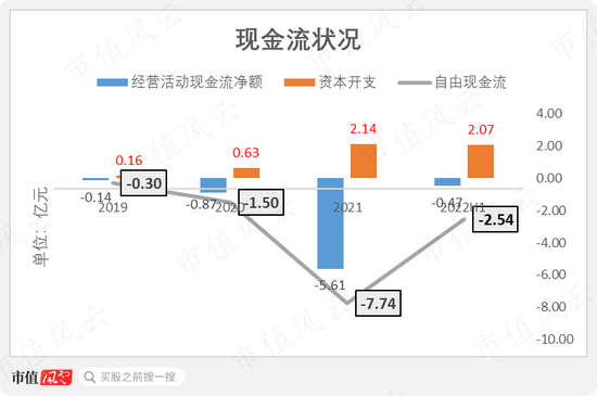與此同時,公司的資本開支日益增大,2021年和2022年上半年均超過2億元。