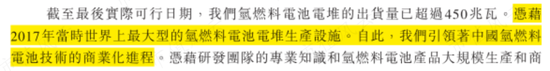公司表示,其在2017年,便擁有當時全球最大的氫燃料電池電堆生產基地,自此引領着國內氫燃料電池技術的商業化進程。