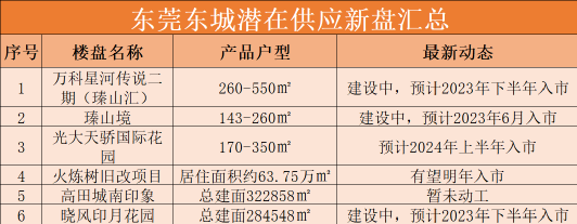 此外,東城還有高田城南印象、曉風印月花園和立新洋杞坑村舊改等項目待入市。