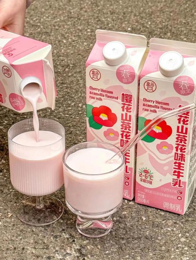 盒馬的生牛乳系列一向是人氣產品,櫻花山茶花生牛乳光聽名字就覺得很春天,櫻花和山茶花融合在牛奶里,清香但不甜膩,兑入咖啡液更是一款絕佳飲品。
