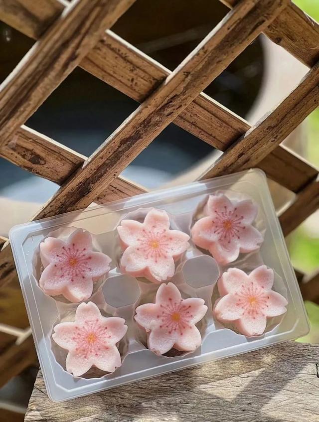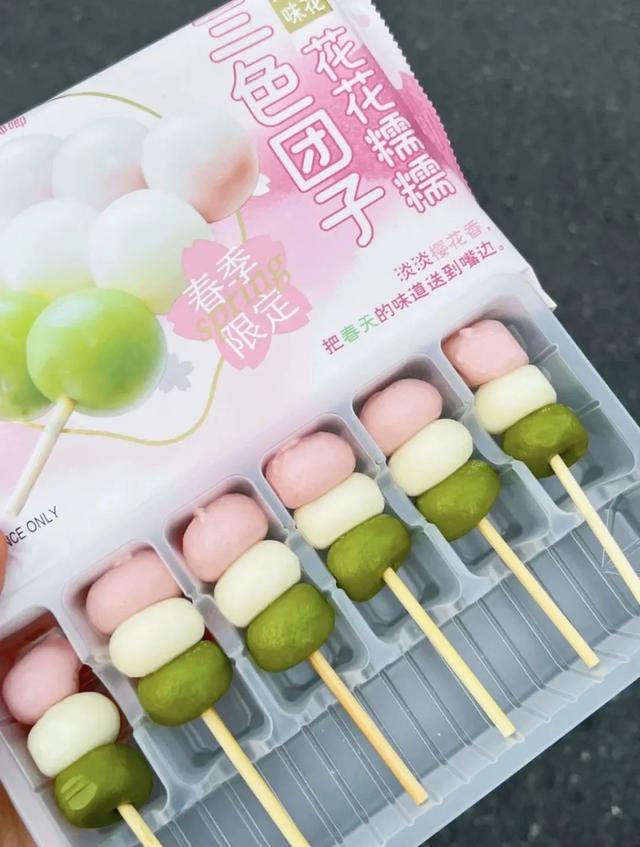 櫻花造型的酒釀米糕,甜度不高帶着淡淡的發酵香,配上果肉夾心,很合適春日的味道。和emoji一樣可愛的花花糯糯三色糰子,櫻花、椰椰牛乳和抹茶青團三種口味,很有春天的feel。