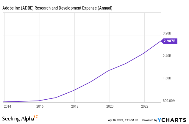 其他最近值得注意的收購包括2020 年末在 2022 年對Figma 的Workfront。由於這些是相對較新的收購,目前還沒有機會分析它們如何影響公司財務的趨勢。但是,在這里想強調的是,Adobe通過這些收購繼續擴大其目標市場和影響力。該公司正在努力贏得新客户,並使他們對 Adobe 產品的體驗更加全面,從長遠來看,這是提高股東財富的一個非常好的跡象。