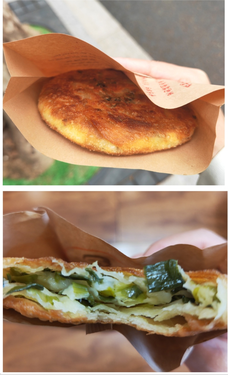 葱油餅外觀金黃,內里層次分明