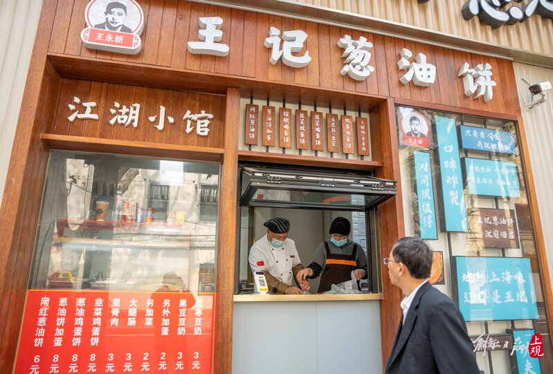 在襄陽南路店葱油餅店開出來前,因為疫情耽誤了裝修,迫於生計的王永新也沒有停止尋找店面的努力。去年6月起,他輾轉各處跑了近3個月,在奉賢路南匯路附近找到了一家合適的店面,並於去年10月開張。現在,奉賢路店和襄陽南路店的油酥等主要物料由他配製和把關,兩家店日常的打理分別由他的女兒女婿和侄子負責,他則時常去店里幫幫忙。