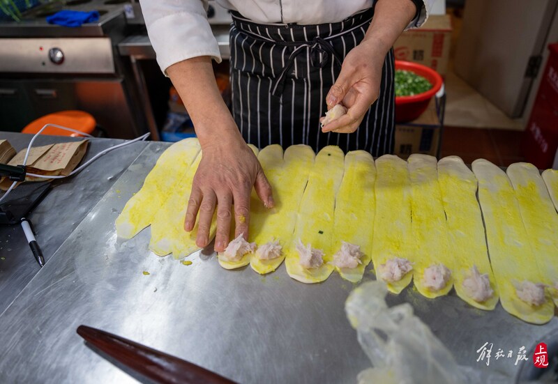 「在店里做葱油餅一天要站十多個小時,手上的活不能停,也沒有周末和節假日,很多人吃不了這個苦。」王永新説,愚園路店最忙的時候,他每天早上4點多就起牀,開始燒水、和麪、切葱花等準備工作,6點開始有零星顧客來。早上7點到10點是大家買早餐的高峰,下午2點到6點是第二個高峰時段,有人把葱油餅當午餐,也有孩子放學后買只餅墊墊肚子。直到晚上7點收攤,一天需工作約15小時,長年累月如此。
