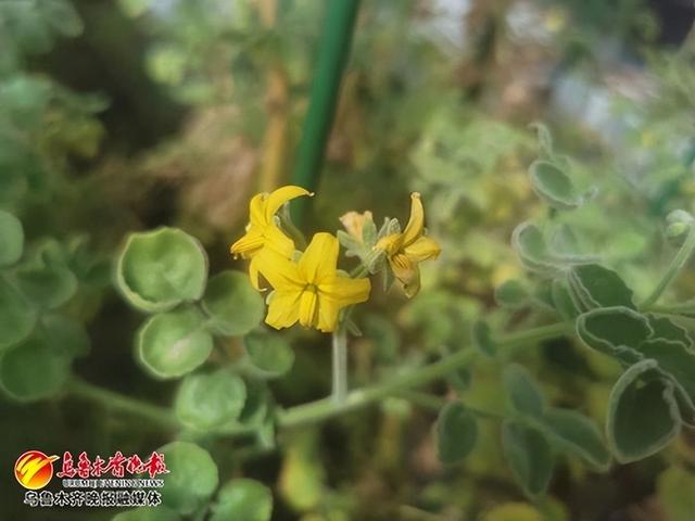 珍貴的番茄野生重質資源——潘那利番茄,正開着幾朵黃色的小花。記者江斌偉攝