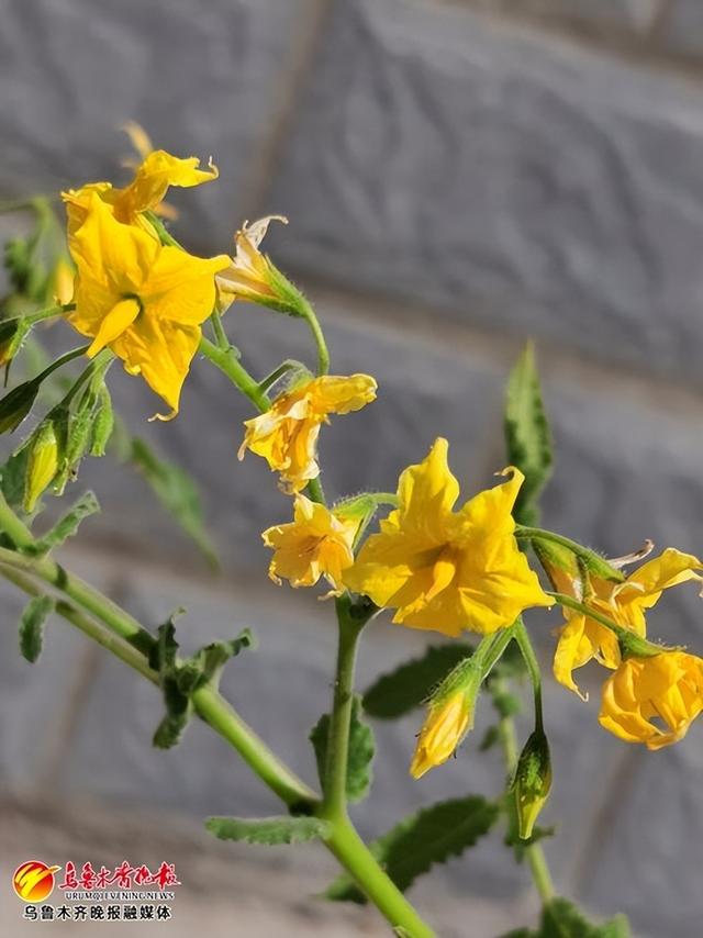 陽臺下,幾株潘那利番茄藤蔓纖細而綿長,小葉鈍圓少缺刻,覆蓋腺毛,幾朵小黃色擁簇着綻放在陽光下。用手捏捏,葉片黏糊糊的。葉片腺毛分泌的黏液能抵抗多種昆蟲襲擊。