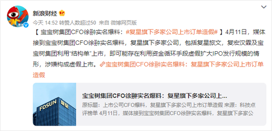 4月11日,媒體接到寶寶樹集團CFO徐翀實名爆料,復星旗下多家公司造假上市,其中包括寶寶樹,且他掌握了確切證據,等待着向有關部門進一步反應。
