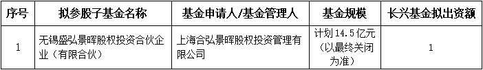 長興基金本次公示的擬參股子基金基本情況見附件。擬參股子基金的具體名稱以最終工商註冊爲準,基金管理人名稱、基金規模、長興基金出資額等以最終簽訂的協議爲準。