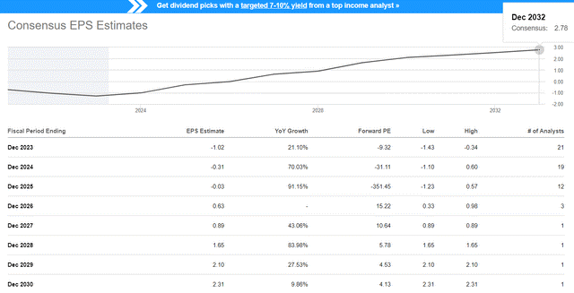 對公司每股收益的主要打擊來自2023財年的數據——分析師預計該公司今年會略有恐慌,但在未來幾年會很快趕上: