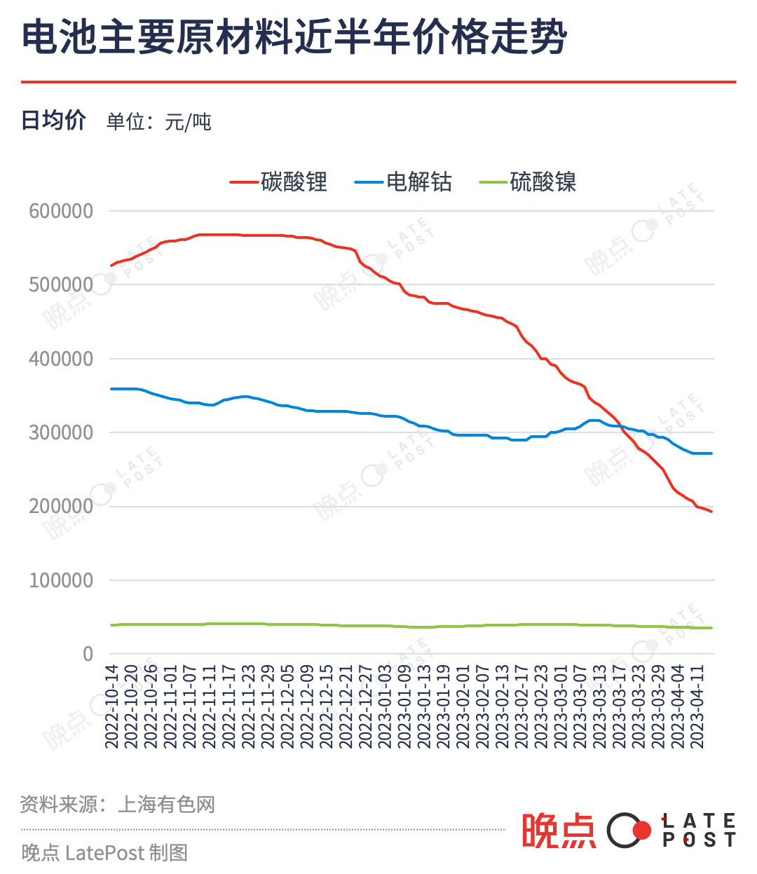 接近此事的人士稱,寧德時代去年底就在醖釀降價計劃,當時它判斷鋰價一定會在2023年下降,它希望自己是主動發起競爭的人,而不是被動捲入。但到3月底,電池公司購買碳酸鋰的實際成交價已跌破20萬元/噸。一場價格戰還沒開打,就已被衰減的需求化解。