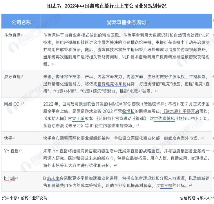 遊戲直播行業主要公司業務規劃情況