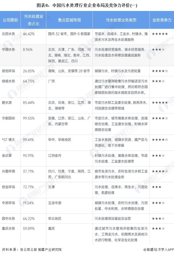 4、中國污水處理行業企業佈局及競爭力評價
