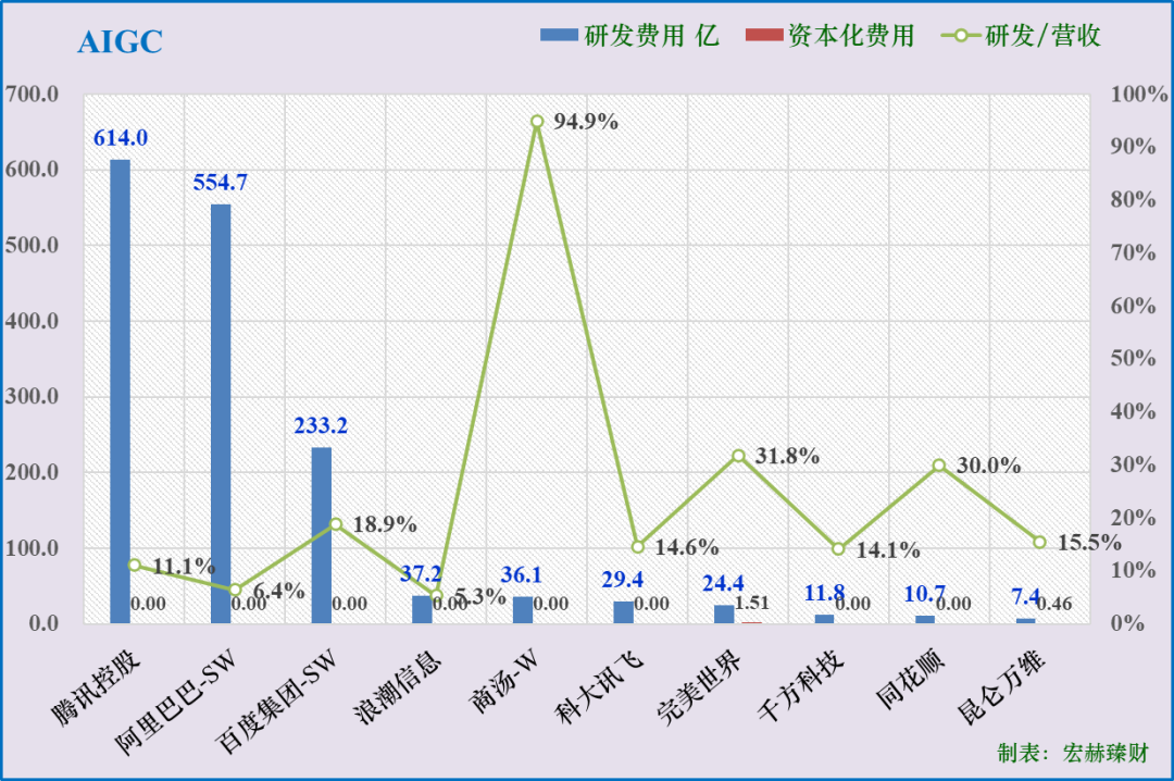 目前涉及「AIGC」概念的陸港上市公司共有76家(A股71家,港股5家),部分財務數據圖如下: