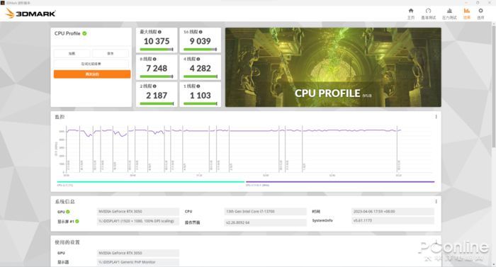 在3DMark的CPU性能測試項目里,可以看到Corei7-13700在單線程測試成績為1103、雙線程為2187、四線程為4282、八線程為7248、十六線程為9039、最大線程為10375。整體成績都有着相當不錯的表現,也表明了酷睿i7-13700在體現綜合性能的處理器核心性能表現上是值得信賴的。
