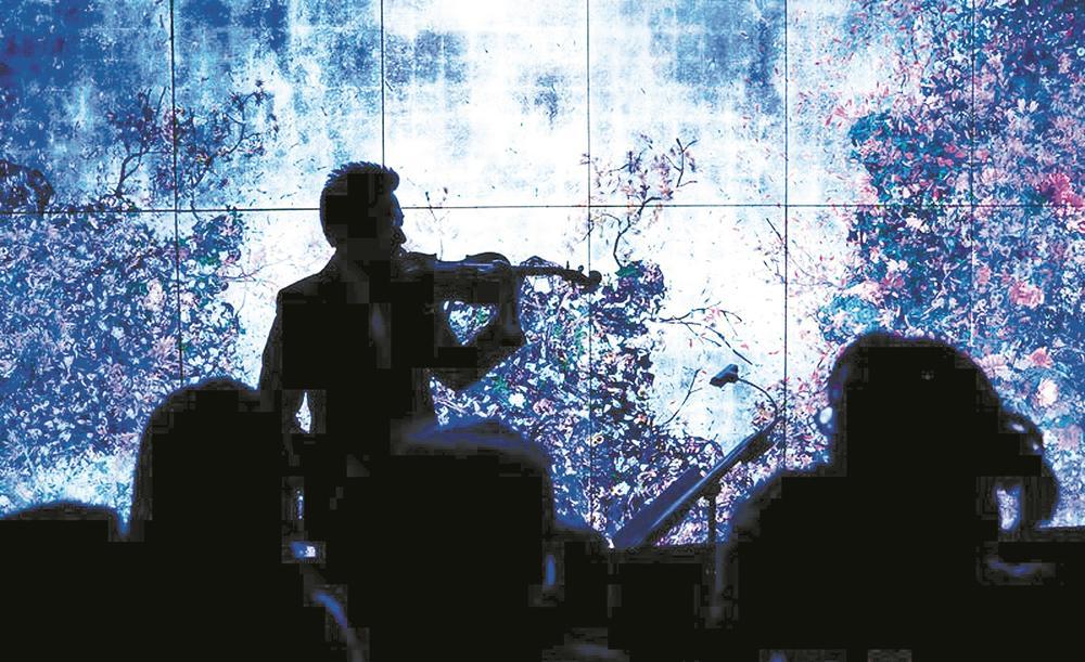 小提琴演奏家時震宇在全球第二座數字藝術美術館無界美術館空間內,演繹德彪西、維瓦爾蒂等作曲大師之作,成為觀眾的新體驗 圖據上海交響樂團