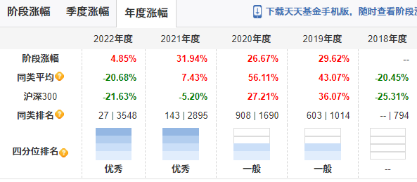 這讓筆者想起了三年前的丘棟榮,在市場極端行情中他的投資策略也出現短暫失靈,不過在質疑中他堅持了下來,2021年和2022年守得雲開見月明,最終雖然每個自然年度沒有非常誇張的表現,但在4年的時間內實現年化收益率25%左右。