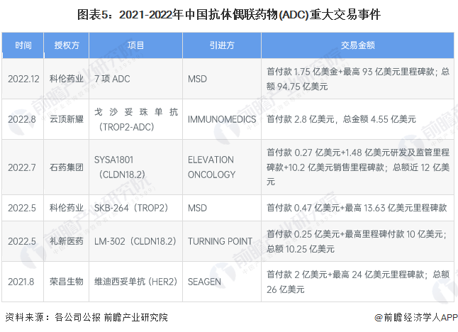 抗體偶聯藥物行業企業交易情況