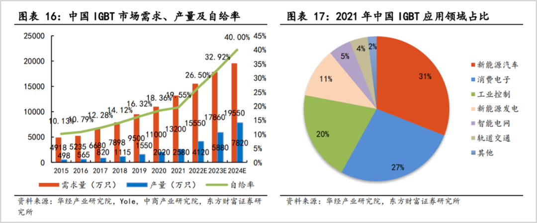 2020年之前,工控還是下游應用的第一大領域,而近年來在新能源汽車和電力新能源的帶動下,IGBT需求陡然上升。