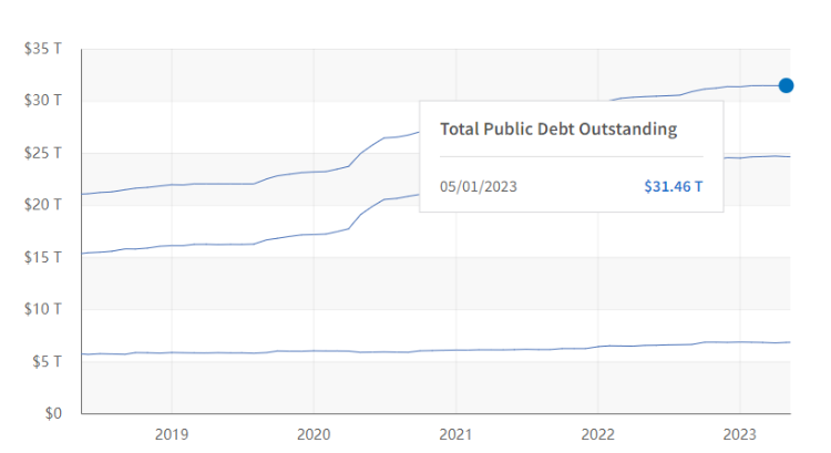 債務上限是國會對美國聯邦政府債務施加的上限,意在限制聯邦債務與財政支出的無序擴張。由於在疫情期間財政支出大幅增加,早在2023年1月,美國政府債務余額就已觸及31.4萬億美元的法定上限。每當債務上限被突破之后,國會便會採取行動,包括永久提高債務上限、暫時延迟債務上限以及修改債務上限定義等措施。