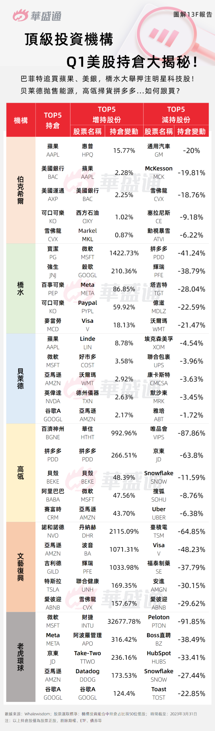 華盛資訊整理了華爾街部分明星機構Q1的重倉標的和調倉動向,揭祕頂級機構美股調倉,教你如何跟買大佬!