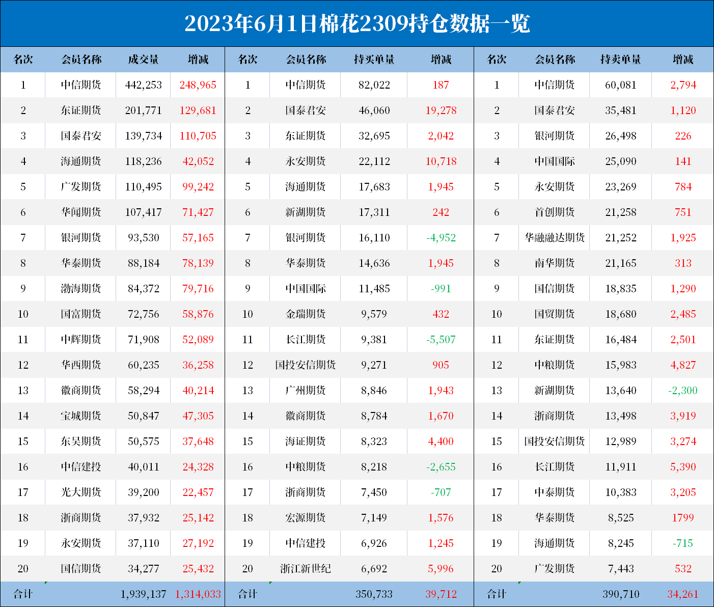 前20席期貨公司持倉數據顯示:棉花期貨主力合約今日淨持倉-39977手,處於淨空頭狀態,較前一交易日的-31546手有所增加。前20席多頭增持39712手,前20席空頭增持34261手。位列前五多空共增倉39235手,其中多頭增倉34170手,空頭增倉5065手。值得注意的是,多空排名前20席機構當中,有1席進行了空轉多的操作。國泰君安期貨在大幅增持19278手多單的同時小幅增持1120手空單,或表明其認為后市仍有上漲空間,多頭大舉入場。今日沒有席位進行多轉空的操作。
