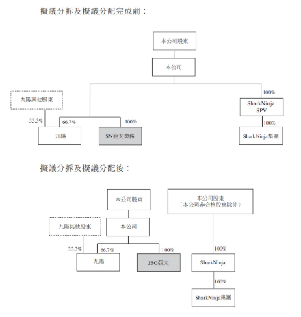 值得一提的是,分拆后,JS環球生活將剝離SharkNinja中北美和歐洲業務(佔2021年收入和利潤70%),並保留九陽業務以及SharkNinja亞太區業務。SharkNinja 集團將組建獨立的管理團隊,除董事長外,兩家公司將不會有重疊的執行董事和管理人員。