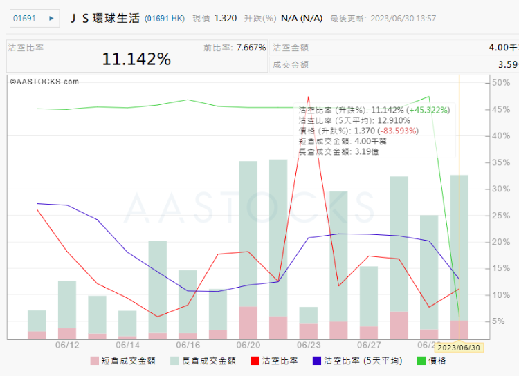 6月30日,港股JS環球生活開盤倒插80%,盤中放量挫84%,現報1.34港元每股,成交額5.39億港元,最新總市值僅47億港元。