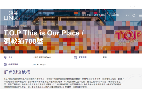 領展以收購的模式取得物業,由於位置十分優質,於是領展將物業進行翻身,低層的部分,改建為商場「T.O.P」,善用了位置的優勢,大幅提升租金,從而令物業的價值上升。