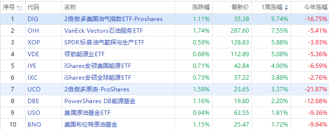 EIA原油庫存降幅大於預期,美國經濟數據強於預期,改善需求預期,為油價帶來利好。能源ETF方面,2倍做多美國油氣指數ETF-Proshares $DIG 周漲9.74%,VanEck Vectors石油服務ETF $OIH 周漲7.55%,SPDR標普油氣勘探與生產ETF $XOP 周漲5.88%。