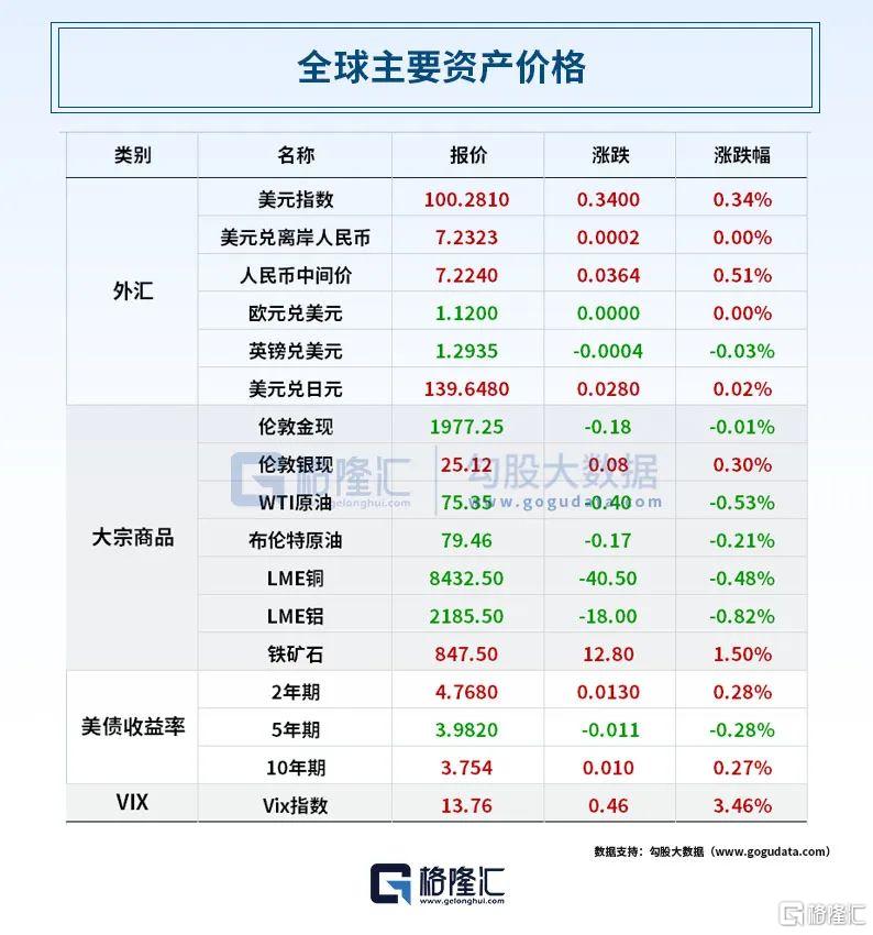 全球資產表現上,受7月加息在即的預期影響,美元指數最高漲0.6%並站穩100關口上方,收復上周四以來過半跌幅,上周曾因通脹降温而創今年最深單周跌幅。歐元兑美元轉跌並失守1.12,日元兑美元一度跌至140,離岸人民幣兑美元失守7.23,較上日收盤最深跌441點,刷新逾一周最低。油價漲超1%后轉跌,布油失守80美元。美國上周EIA原油庫存減少70.8萬桶,預期為減少244萬桶。