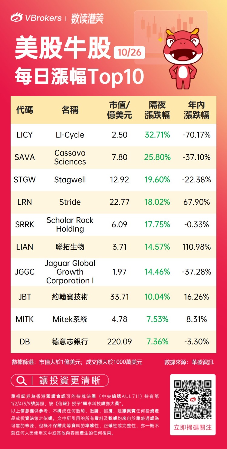 科技龍頭股業績不及預期,帶崩市場,但是也有部分績后走牛的個股,投資者可關注投資機會。發仔梳理了每日美股漲幅Top10榜單,以下為漲幅靠前的個股: