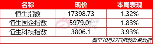 本周港股市場震盪微升,其中恆生指數全周累計上漲1.32%,報收17398.73點,恆生科技和國企指數同期分別升3.93%、1.83%,報收3806.10點、5979.01點。