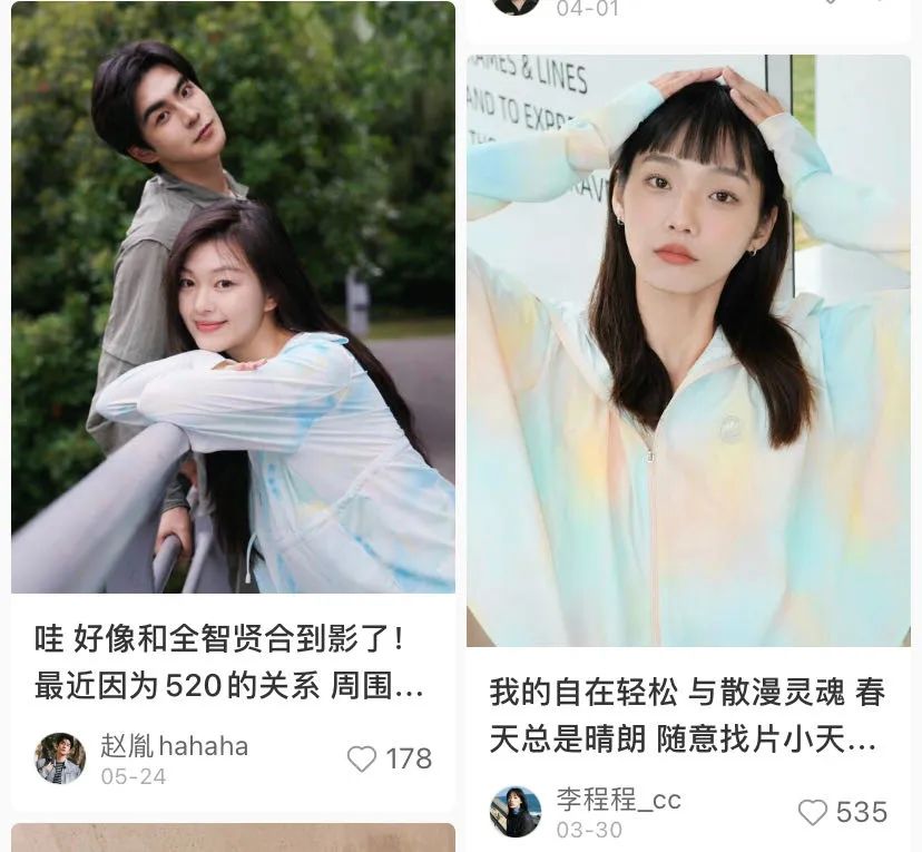 今年618前夕,琳娜摸魚刷小紅書時,在首頁看見一位博主安利了一件印花水彩、色彩斑斕但不突兀的短款防曬衣。
