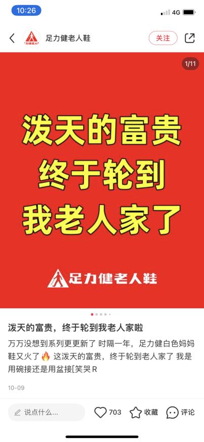 足力健官方賬號也感嘆,這潑天的富貴終於輪到我老人家了。