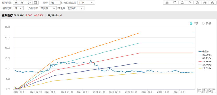從估值角度來看,當前業聚醫療估值還是比較具有吸引力。根據WIND數據顯示,截至2023年11月27日收盤,公司PE(TTM)為23.716倍,處於上市以來的區間下限,安全邊際高,增長潛力足。