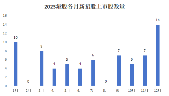回顧港股IPO市場2023年以來的表現,Wind數據顯示,2023年港股主板迎來73家新股上市,其中70只為首次公開招股,3只為GEM轉板。新上市公司數量較2022年減少了18%,並且出現兩個月零隻新股上市的情況,分別在2月跟8月。