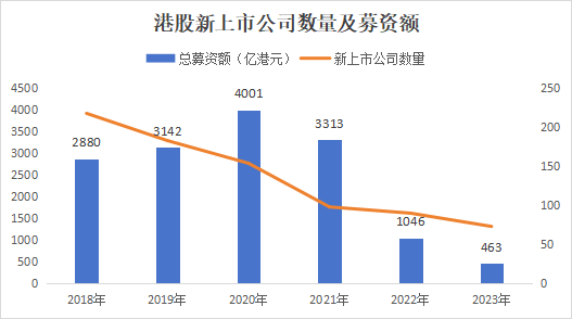 受經濟復甦、地緣摩擦、美聯儲加息等因素影響,全球金融市場的不穩定深刻的在去年影響了國內股票市場,港股IPO活動在2022年大幅放緩並延續至2023年。由於香港實行聯繫匯率制度,持續的高息環境疊加外圍的惡意唱衰,讓整體投資市場情緒也非常低迷,IPO活躍度低,募資額大幅下降。