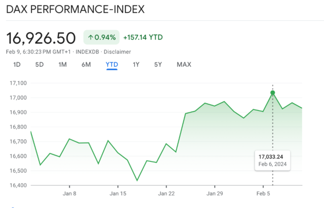 2月6日,德國Dax指數刷新歷史新高,創下17049點的歷史新高,德國匯豐銀行技術分析主管認為,突破關鍵阻力位打開了德國指數進一步上漲的空間。然而,無論是德國的經濟基本面還是企業消息面都沒有能夠提振股指的實質性利好。