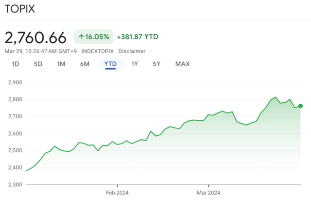 其中,在主要市場中日股今年一季度的漲幅最為矚目,因投資者對其經濟前景的看好,在芯片相關股票價格上漲的推動下,日本東證指數上漲超16.2%,不斷逼近歷史新高。