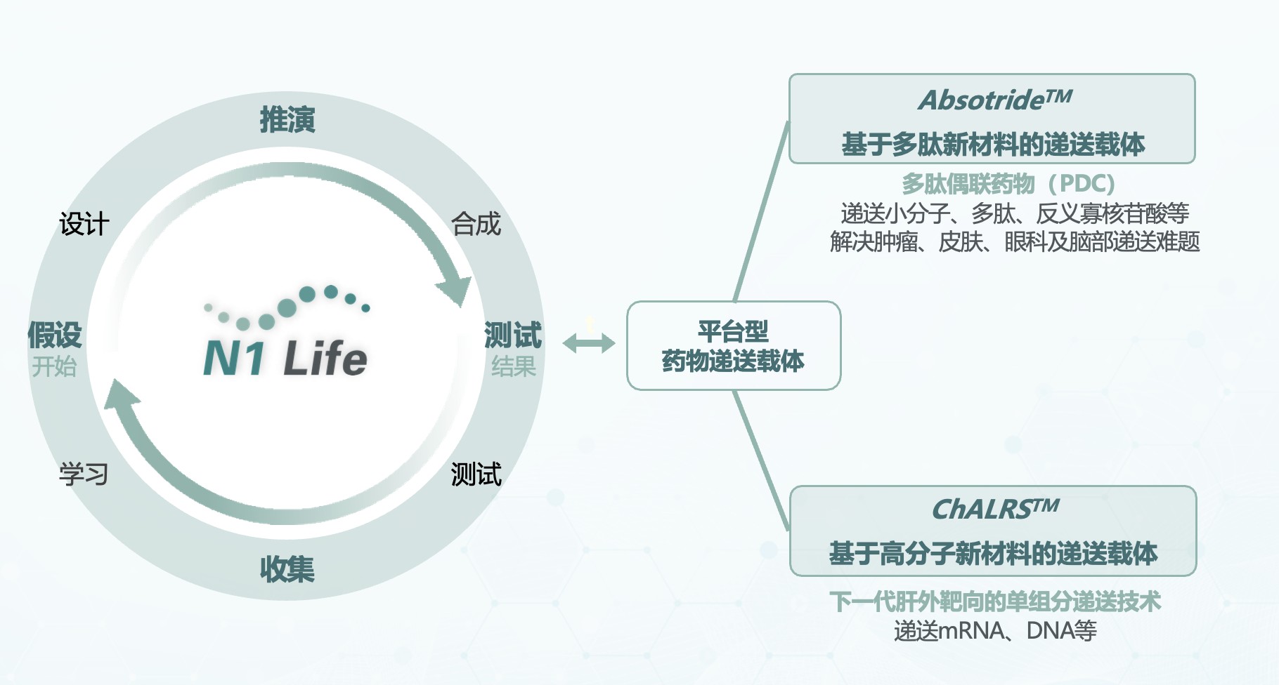 此外,N1 Life也將多年來積累的實驗數據用於建立AI模型,與美國AI技術企業YDS Pharmatech達成合作,通過實驗數據,搭建用於預測多肽序列和性質的生成式人工智能模型,利用AI技術的輔助對平臺進行更快速的技術迭代,探索新型多肽設計。整體而言,當前, Absotride和ChALRS這兩大核心的平臺型遞送系統的開發已相對成熟,目前已與國內外近10家公司達成技術合作,根據不同應用場景持續進行個性化優化。